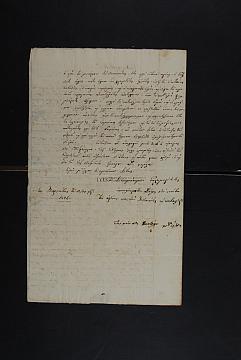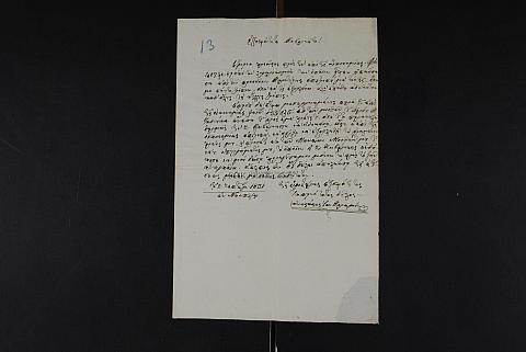 Επιστολές με διάφορες υποθέσεις, προτάσεις προς τον Κυβερνήτη, αιτήματα κ.λπ. Επιστολή του Λυκούργου Κατσόνη, γιου του Λάμπρου Κατσόνη με καταγωγή από τη Λειβαδιά. Αναφορά στο βιογραφικό και τον αγώνα του πατέρα και του ίδιου, τη συνδρομή του στον Αγώνα, και διεκδικεί μέρος της περιουσίας του πατέρα του στην Ελλάδα (12)