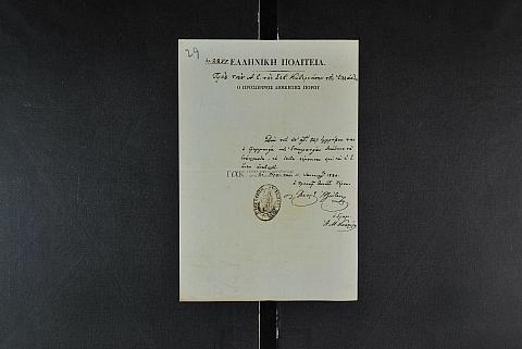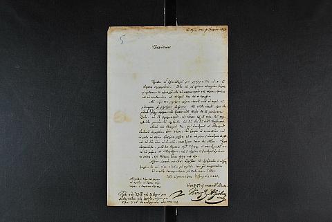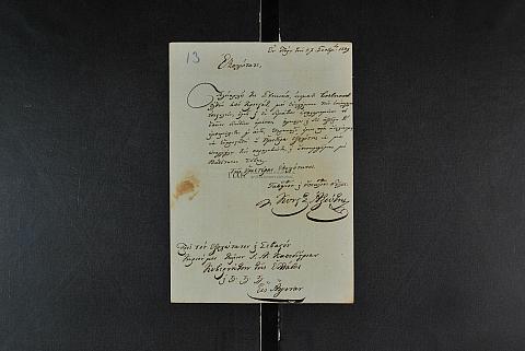 Μία επιστολή απευθύνεται προς τον Βιάρο Καποδίστρια με ημερομηνία 15/12/1827 (1).