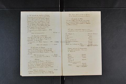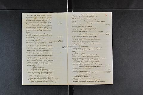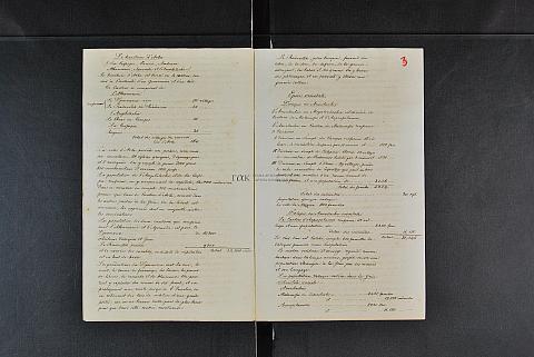 Περιέχει διάφορα έγγραφα (υπομνήματα, εκθέσεις, πίνακες κ.λπ.) με γεωγραφικές και στατιστικές πληροφορίες/πίνακες: