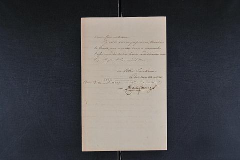 Περιέχει αλληλογραφία του Κυβερνήτη Ι. Καποδίστρια με τον DeLaFerronays, υπουργό Εξωτερικών της Γαλλίας (επιστολές και σχέδια επιστολών). Σχετικά με διάφορες πτυχές των σχέσεων Ελλάδας-Γαλλίας, την παρουσία της Γαλλίας στην Ελλάδα, τις διπλωματικές εξελίξεις, τη Συνθήκη του Λονδίνου, την αντιμετώπιση των δυνάμεων του Ιμπραήμ, την αποχώρηση των δυνάμεων του Ιμπραήμ από την Πελοπόννησο, το γαλλικό εκστρατευτικό σώμα στην Πελοπόννησο κ.λπ. Πολλές επιστολές σχετίζονται με την προετοιμασία και οργάνωση του γαλλικού εκστρατευτικού σώματος στην Πελοπόννησο. Μνεία σε AugusteLounerain, κόμη Λοβέρδο και Εϋνάρδο [1, 2, 3, 7], συνταγματάρχη Raybaud [4], συνταγματάρχη Φαβιέρο [10], μνεία στον Βασιλιά της Γαλλίας, στη Συνθήκη του Λονδίνου.