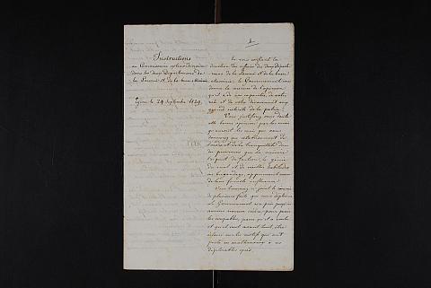 Περιέχει τρία σχέδια επιστολών με διαταγές-οδηγίες του Κυβερνήτη Ιωάννη Καποδίστρια προς τον Λυκούργο Λογοθέτη, Έκτακτο Επίτροπο Λακωνίας και Κάτω Μεσσηνίας. Παρέχονται αναλυτικές οδηγίες-κατευθύνσεις αναφορικά με προηγούμενες αναφορές του Λ. Λογοθέτη σχετικά με την κατάσταση στην περιοχή.