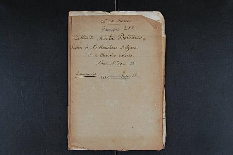 Περιέχει επιστολές του Δημητρίου Μπότσαρη προς τον Κυβερνήτη Ιωάννη Καποδίστρια με τις οποίες τον ενημερώνει για την πρόοδο των σπουδών του στο Μόναχο μαζί με κάθε είδους ευχαριστίες (1-8), επιστολή του Κ. Μπότσαρη προς τον Κυβερνήτη Ιωάννη Καποδίστρια (9), επιστολές του Νότη Μπότσαρη προς τον Κυβερνήτη Ιωάννη Καποδίστρια (10, 11), επιστολές της Χρυσούλας Μπότσαρη (μέσω της κόρης της Βασιλικής) προς τον Κυβερνήτη Καποδίστρια με ευχαριστίες για τον Κυβερνήτη και σχετικά με χρέη της (12-15), επιστολές του Χρ. Ανδρές προς τον Κυβερνήτη (16-19)