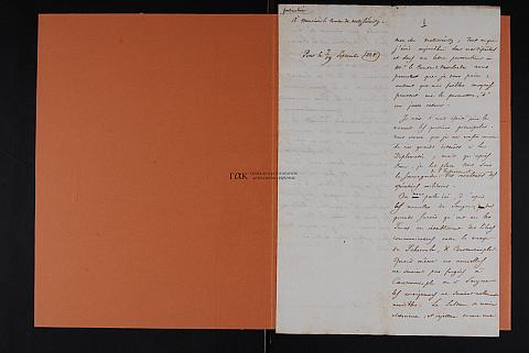Ό,τι γράφει στα σημερινά επίσημα έγγραφά του και στην ιδιαίτερη επιστολή του προς τον Nesselrode, αποδεικνύουν στον Matussévitz ότι με τα λίγα μέσα που διαθέτει του παρέχει μια δίκαιη ανταπόδοση. Δεν εμπιστεύεται κανένα από τα μεγάλα τους συμφέροντα [nos interêts=τα ελληνικά συμφέροντα] στη Διπλωματία αλλά όλα, μετά το θεό, στην προστασία του αυτοκράτορα και τα αποτελέσματα των στρατιωτικών επιχειρήσεων.