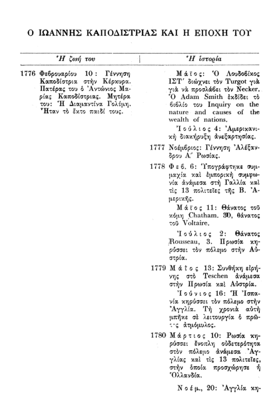- Ο Ιωάννης Καποδίστριας και η εποχή του (Χρονολογικός πίνακας)