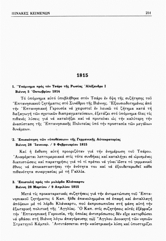 24. Ενημερωτικό σημείωμα προς τον Μέττερνιχ 16/28 Οκτωβρίου 1815