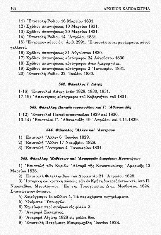- Αρχείον Ιωάννου Καποδίστρια, τ. Ι΄, 1983